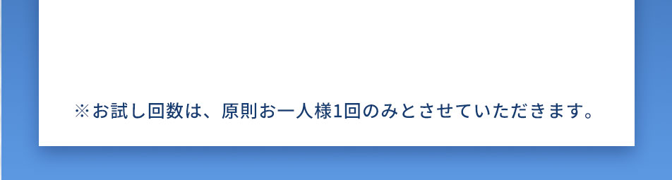 お試し回数は、原則お一人様1回のみとさせていただいております。